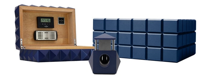 Nya humidorer och bordsgiljotin från Colibri – Quasar och Heritage i midnattsblå färg.