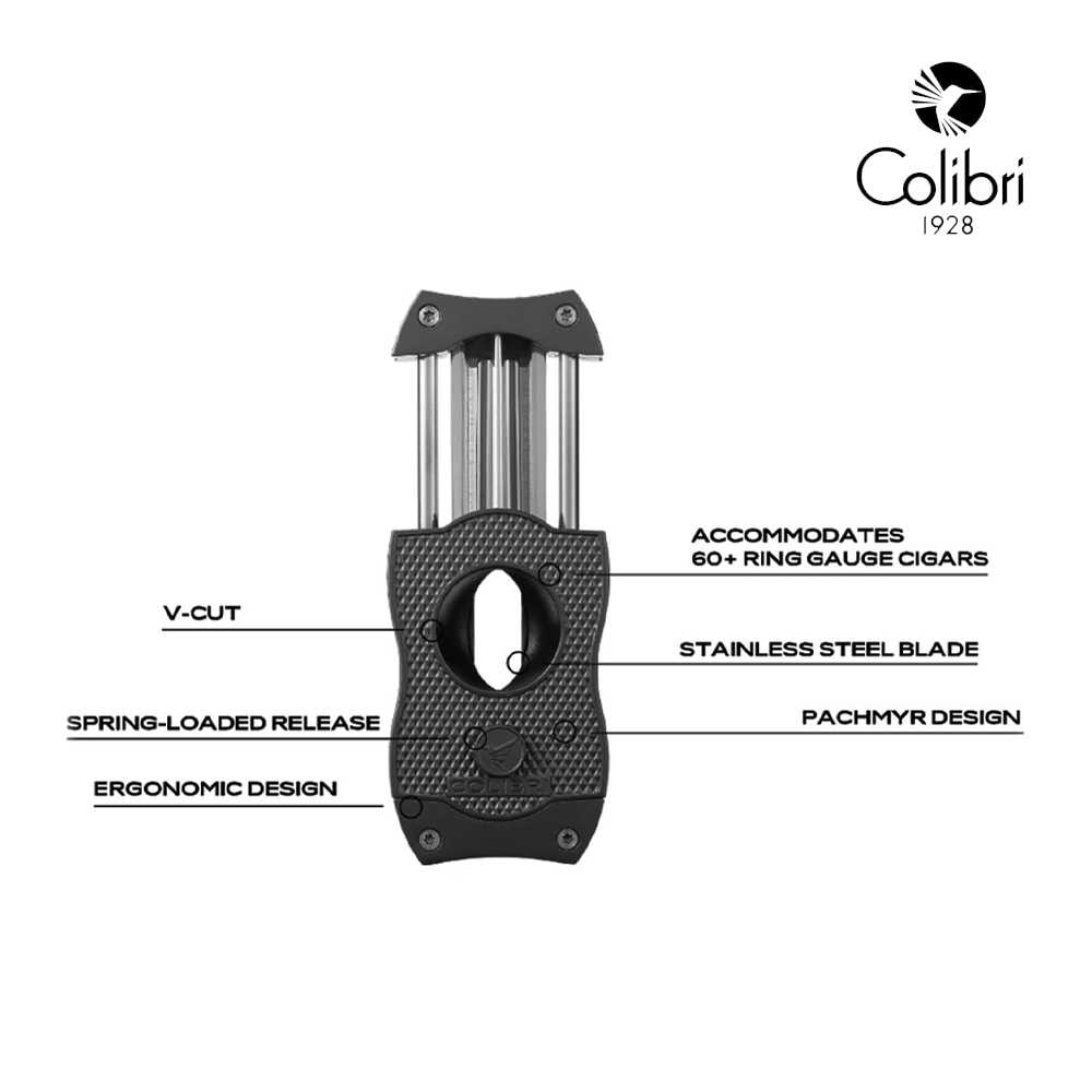 Bladets styrda rörelse går smidigt, vilket säkerställer ett enkelt och djupt snitt. Njut av Colibri V-Cut på stora cigarrer med ett ringmått på 60+ – och det fungerar också bra på en torpedo.