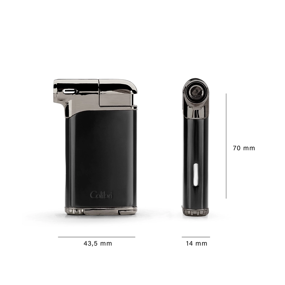 Colibri Pacific Air pip- och cigarrtändare har en sidomonterad låga för enkel hantering och insyn vid tändning. Den enskilda tändningen är bekvämt placerad längst upp, med en bränsleindikator längs sidan och en lättanvänd, överdimensionerad justering för lågan längst ner. Ett inbyggt tamp- och reamerverktyg finns också placerat längst ner på tändaren.