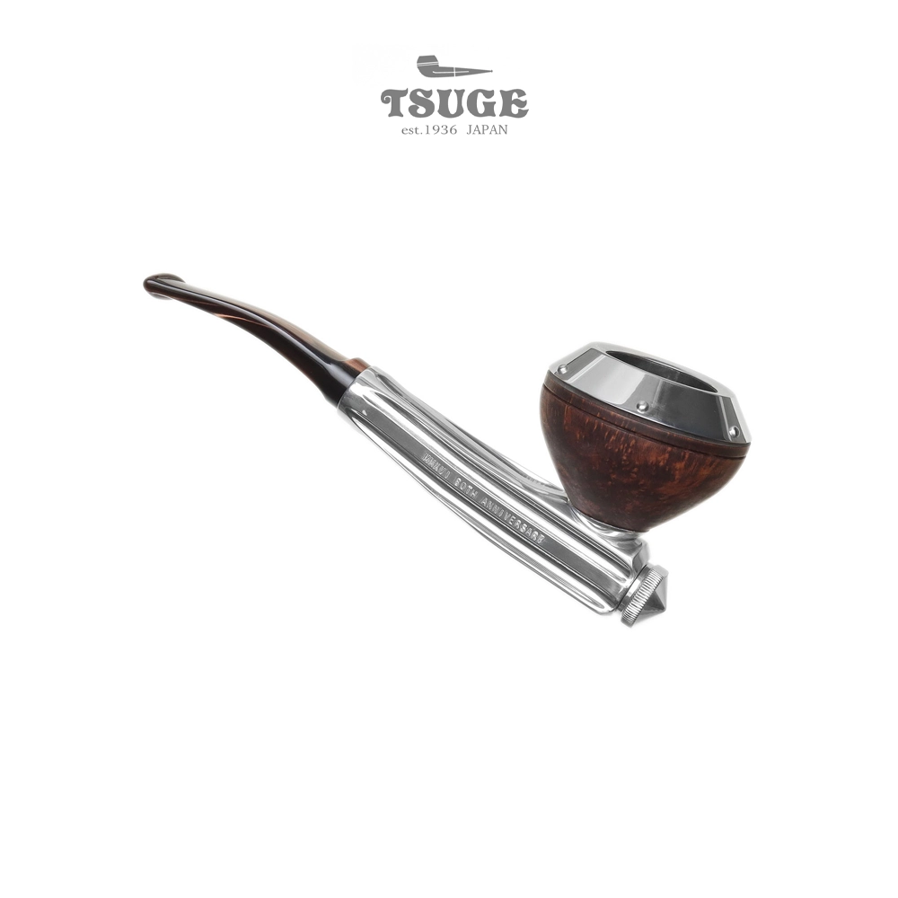 Den här samarbetsprodukten mellan Kirsten & Tsuge är otvivelaktigt häftig och samtidigt extremt begränsad. Denna Rhodesian firar de två företagens 80-årsjubileum, med endast 80 exemplar som släpps. Kirsten-pipor skapades av professor Frederick Kirsten, samma man som designade Boeings första vindtunnel, under mitten av 1930-talet, och har skålar utrustade med en gängad aluminiumrördel – vilket förhindrar att det gängade huvudet fastnar. I detta gemensamma arbete med Tsuge ser vi den berömda radiatorformade kroppen ihopparad med en kromad skål med en ljus metallring som skyddar, samt ett svagt böjt munstycke. En underbar pjäs för samlare och teknikentusiaster.
