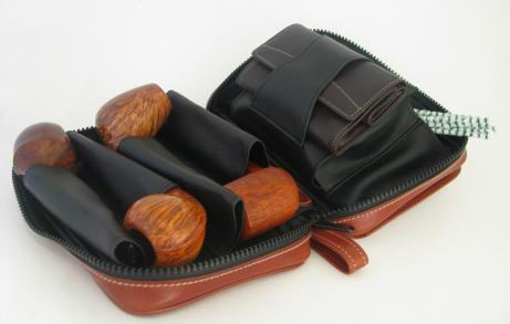 Martin Wess Pipväska äkta läder för 4 pipor – Brun